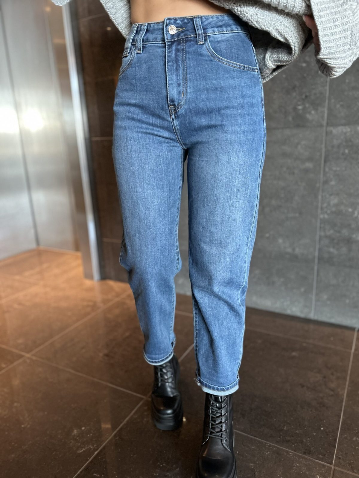 Audinys sudarytas iš 95% medvilnės, 3% poliesterio ir 2% elastano, todėl džinsai yra kvėpuojantys, minkšti, tačiau kartu išlaiko formą ir gražiai prisitaiko prie figūros. Elastanas suteikia patogumo judant, nevaržo ir leidžia jaustis laisvai visą dieną.