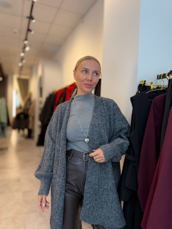 Elegantiškas ir lengvai krentantis kardiganas sukurtas moteriai, vertinančiai tiek estetiką, tiek praktiškumą. Šis modelis subtiliai apgaubia siluetą, suteikdamas jaukumo pojūtį ir vizualinę harmoniją. Puikiai tinka sluoksniavimui – derinkite su bazinėmis palaidinėmis, suknelėmis ar net minimalistiniais kostiumais, kurdamos šiuolaikišką, prabangiai atrodantį įvaizdį.
