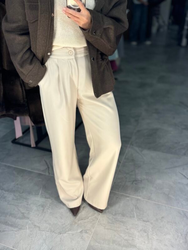 Tobulas derinys tarp klasikos ir šiuolaikiško stiliaus. Šios kelnės išlaiko laiko patikrintą tiesaus kirpimo klasiką, tačiau moderniai priglunda ties klubais ir užpakaliuku, subtiliai išryškindamos figūrą. Dėl kruopščiai apgalvoto dizaino jos tinka tiek biuro įvaizdžiui, tiek elegantiškam laisvalaikio deriniui.