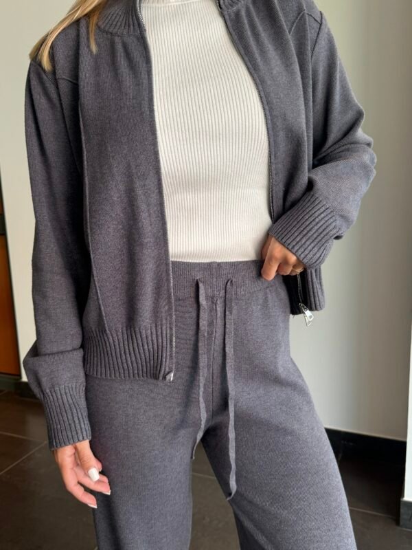 Klasikinio modelio kostiumėlis su švarkeliu – nepakeičiama bazinė garderobo dalis. Minimalistinis dizainas ir neutralios spalvos pabrėžia eleganciją bei suteikia lengvai derinamą įvaizdį tiek kasdienai, tiek ypatingoms progoms. Tiesaus kirpimo kelnės su patogia guma užtikrina komfortą bei laisvą judėjimą, o trumpesnis švarkelis subtiliai formuoja siluetą. Tai universalus derinys, sukurtas šiuolaikinei moteriai, vertinančiai patogumą ir klasikinį stilių.
