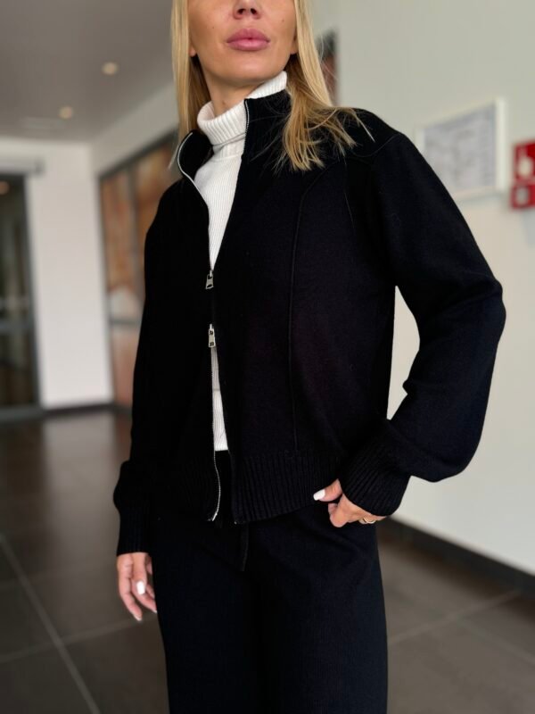 Klasikinio modelio kostiumėlis su švarkeliu – nepakeičiama bazinė garderobo dalis. Minimalistinis dizainas ir neutralios spalvos pabrėžia eleganciją bei suteikia lengvai derinamą įvaizdį tiek kasdienai, tiek ypatingoms progoms. Tiesaus kirpimo kelnės su patogia guma užtikrina komfortą bei laisvą judėjimą, o trumpesnis švarkelis subtiliai formuoja siluetą. Tai universalus derinys, sukurtas šiuolaikinei moteriai, vertinančiai patogumą ir klasikinį stilių.