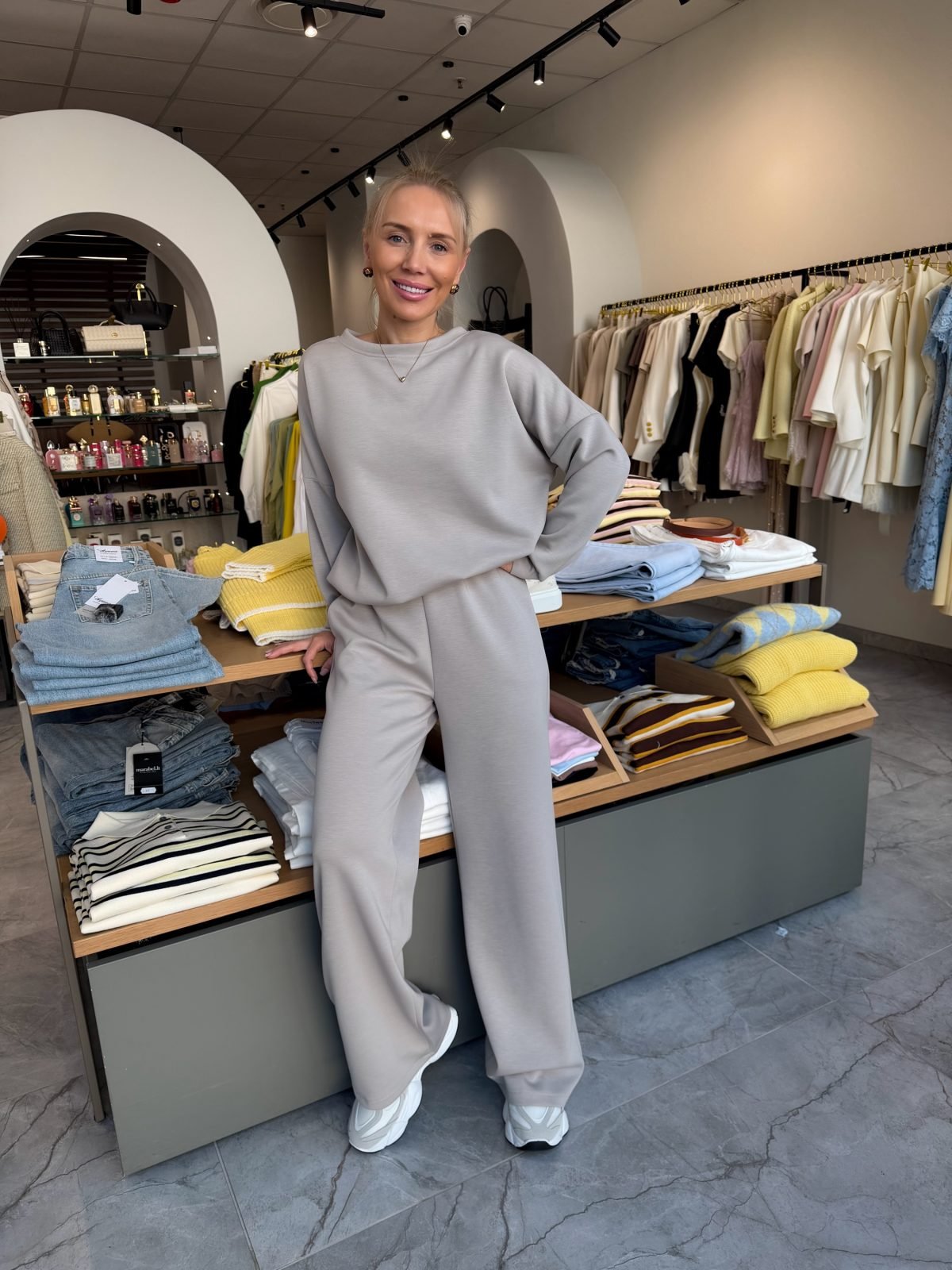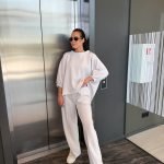 Stilingas ir itin malonus kūnui kostiumėlis, puikiai tinkantis tiek laisvalaikiui, tiek jaukioms dienoms namuose ar mieste. Audinys minkštas, švelnus ir elastingas, todėl nevaržo judesių ir gražiai krenta. Megztukas laisvesnio modelio, o kelnės patogios, be gumos apačioje, todėl atrodo tvarkingai ir elegantiškai.
