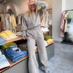 Stilingas ir itin malonus kūnui kostiumėlis, puikiai tinkantis tiek laisvalaikiui, tiek jaukioms dienoms namuose ar mieste. Audinys minkštas, švelnus ir elastingas, todėl nevaržo judesių ir gražiai krenta. Megztukas laisvesnio modelio, o kelnės patogios, su gumos apačioje, todėl atrodo tvarkingai ir elegantiškai.