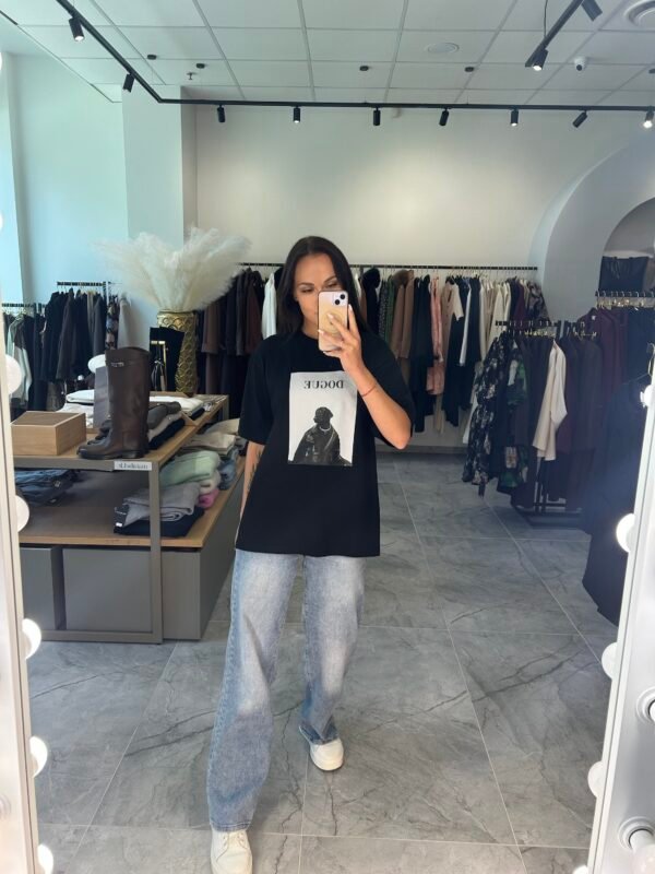 Stilingi ir universalūs baziniai marškinėliai, kurie išsiskiria žaismingu šuniuko piešiniu – puikus pasirinkimas tiek kasdienai, tiek išskirtiniam įvaizdžiui kurti. Labai trendinis dizainas, kuris traukia akį ir puikiai dera su įvairaus stiliaus drabužiais.