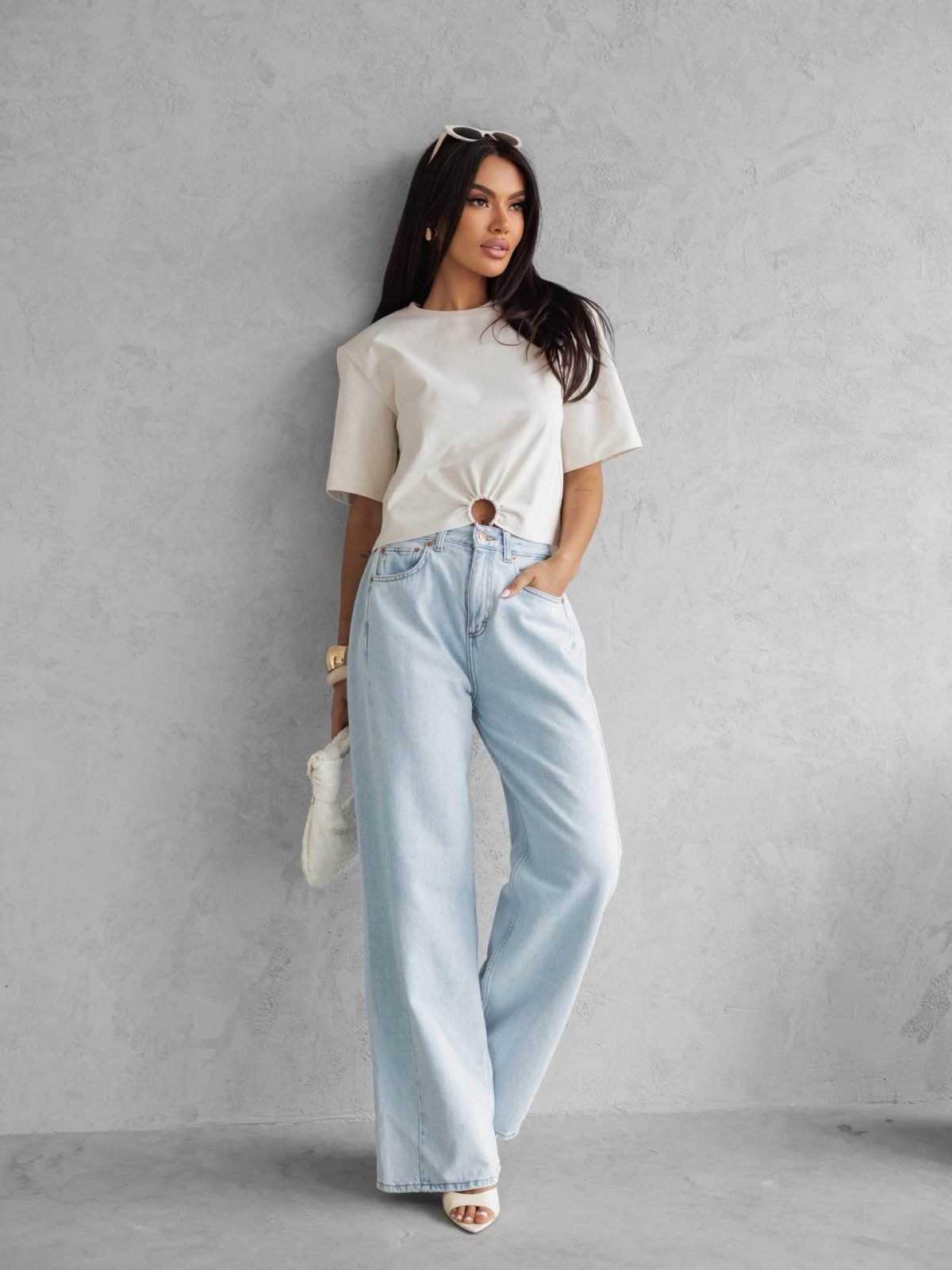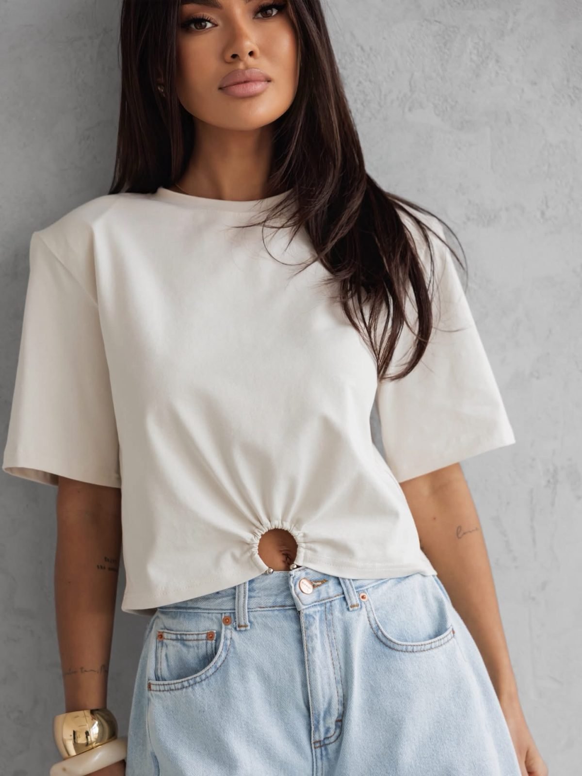 Šie stilingi marškinėliai – puikus pasirinkimas kasdieniam įvaizdžiui. Universalus vieno dydžio modelis tinka XS, S ir M dydžiams, todėl lengvai prisitaiko prie skirtingų figūrų. Pagaminti iš aukštos kokybės audinio – 95 % medvilnės ir 5 % elastano, todėl yra minkšti, malonūs odai, kvėpuojantys ir šiek tiek tamprūs, užtikrinantys komfortą visą dieną.