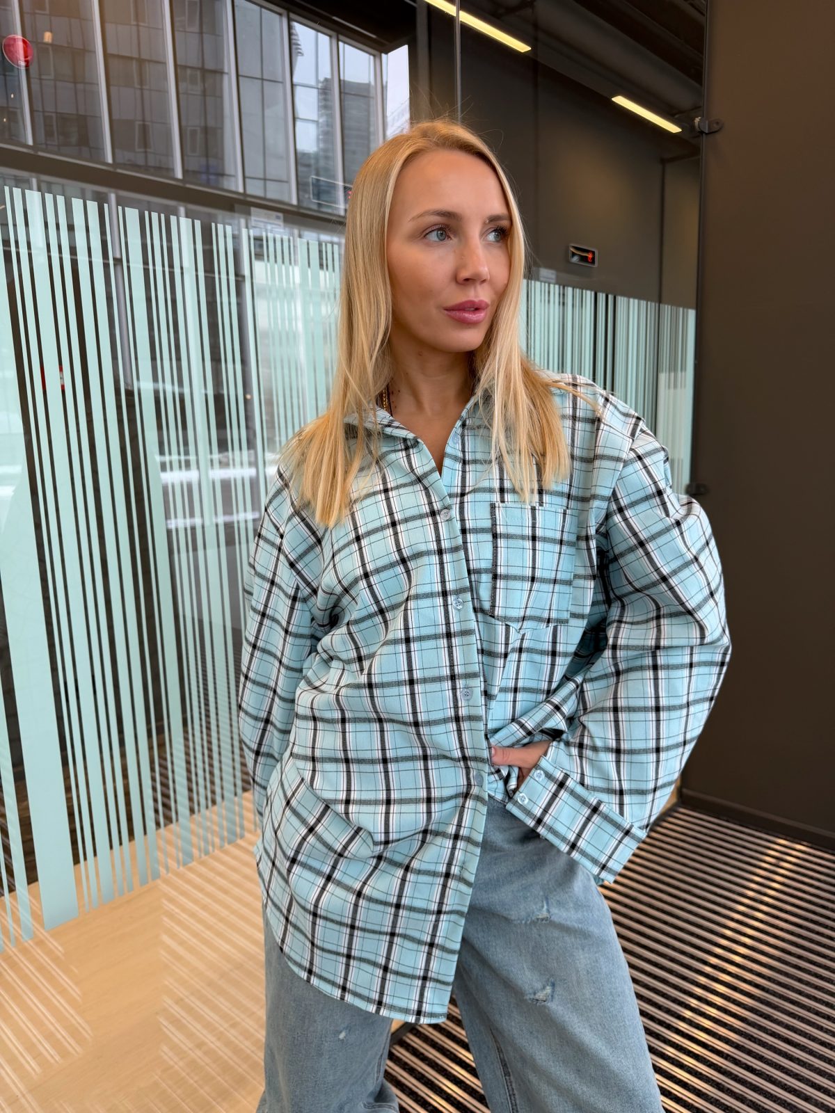 95 % poliesterio ir 5 % elastano sudėtis užtikrina malonų tamprumą, patogumą bei formos išlaikymą. Languotas raštas – laikui nepavaldi klasika, kuri subtiliai pagyvina įvaizdį ir leidžia marškinius lengvai derinti tiek prie džinsų, tiek prie klasikinių kelnių ar sijono.