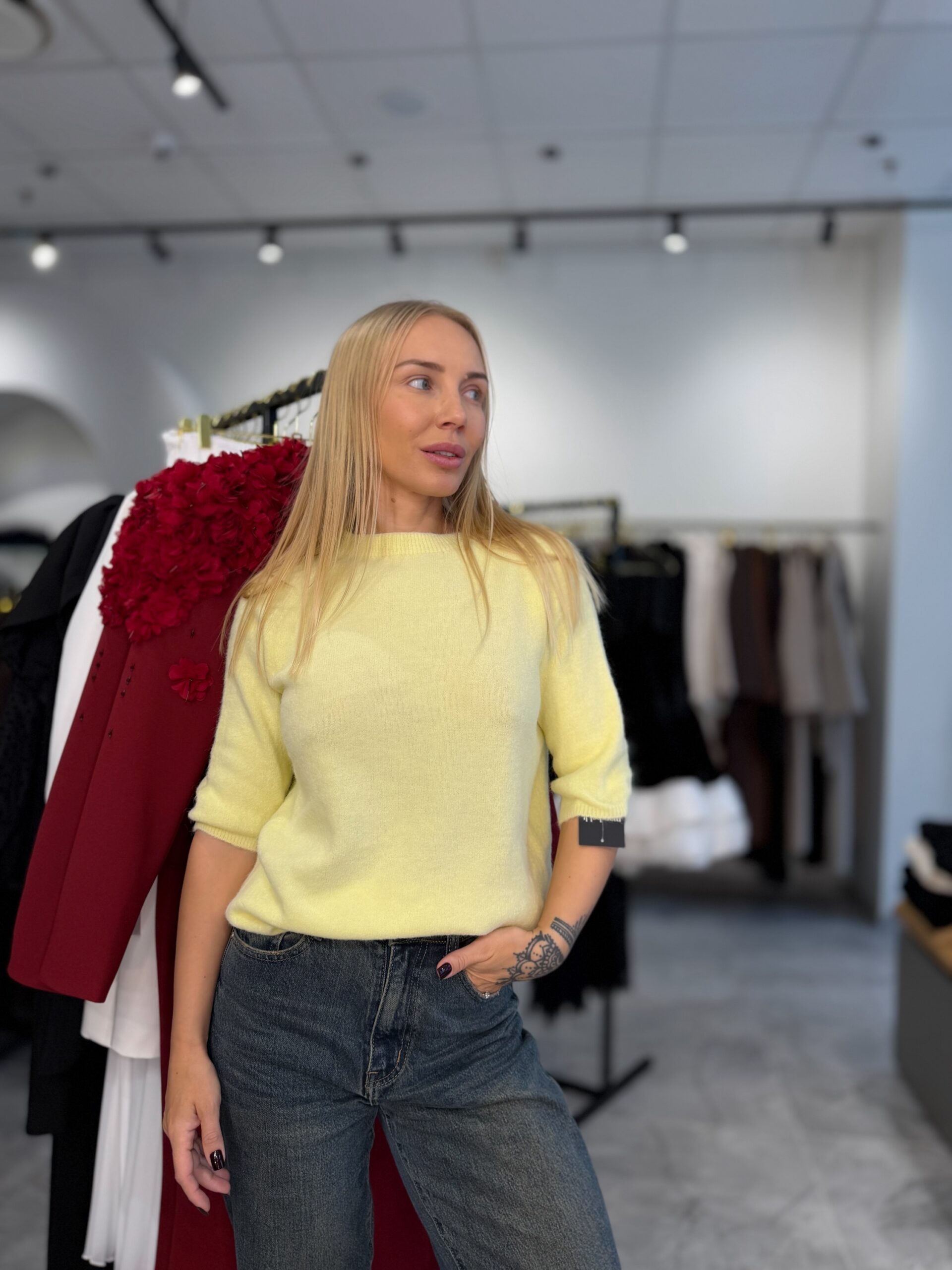 Atrask minkštutį, lengvutį ir ypatingai švelnų megztuką iš baby alpaca – šis modelis su trumpomis rankovėmis idealiai tinka tiek šiltesnėms dienoms, tiek sluoksniavimui. Audinys nesikandžioja ir maloniai priglunda prie kūno, todėl megztukas tampa itin patogus kasdieniam nešiojimui. Dėl lengvo kritimo ir universalaus dizaino jis puikiai dera prie džinsų, sijonų ar klasikinių kelnių.