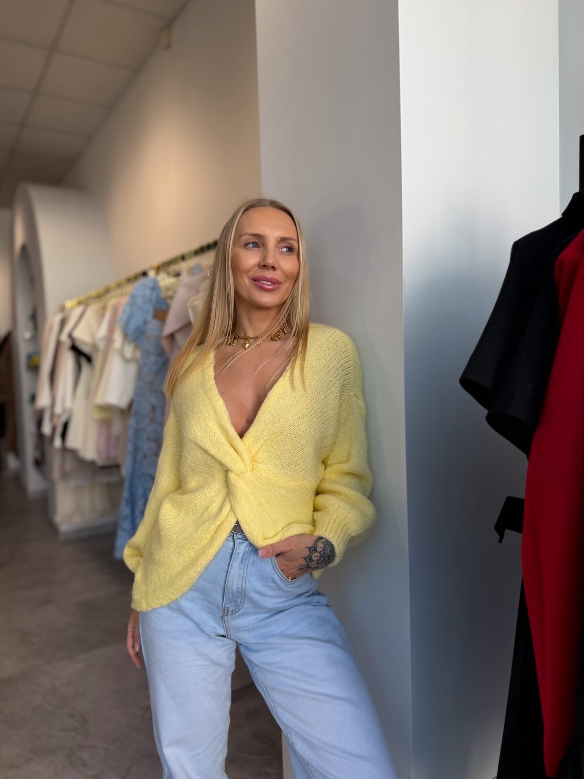Lengvas, stilingas ir jaukus megztukas, puikiai tinkantis kasdieniam dėvėjimui. Minkštas ir malonus audinys užtikrina komfortą visą dieną, o lengva medžiaga leidžia odai kvėpuoti.