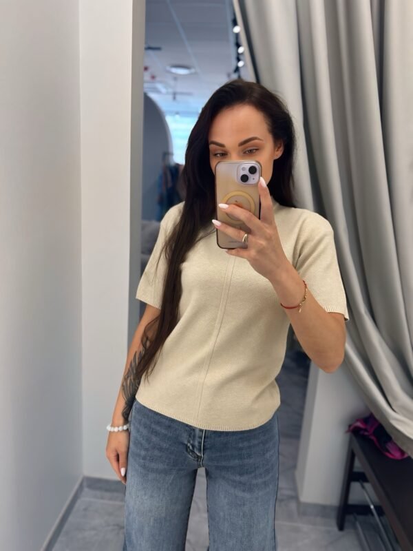 Itin švelni ir maloni prie kūno palaidinė, pasiūta iš lengvos viskozės medžiagos. Trumpų rankovių modelis puikiai tiks šiltesniems orams arba sluoksniavimui vėsesniu sezonu. Dėl laisvo silueto ir elastingumo ši palaidinė puikiai prisitaiko prie figūros – tinka nešiojančioms iki 100 cm krūtinės apimties.