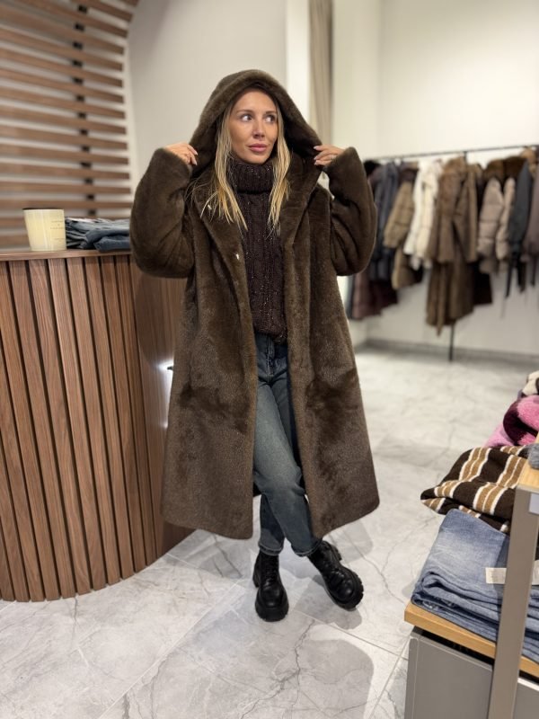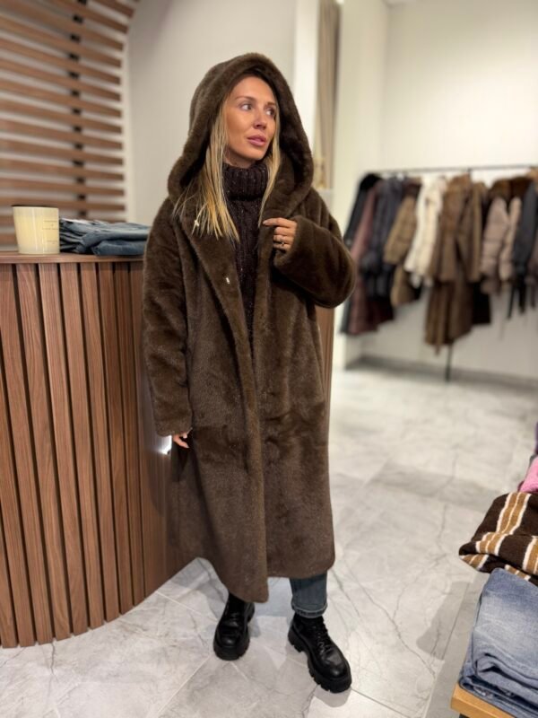 Minkštas, švelnus ir itin jaukus kailinukas iš 100 % poliesterio dirbtinio kailio sukurtas taip, kad suteiktų tiek komforto, tiek elegancijos. Modelis užsegamas spaudemis, o per liemenį susiveržiantis dirželis leidžia lengvai reguliuoti siluetą ir paryškinti figūrą. Tai universalus drabužis, tinkantis tiek kasdieniam, tiek puošnesniam deriniui.