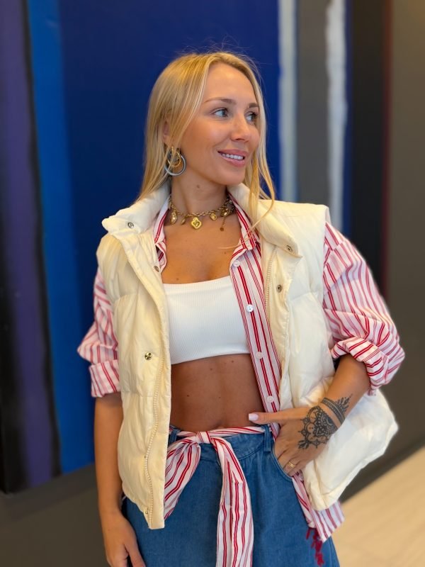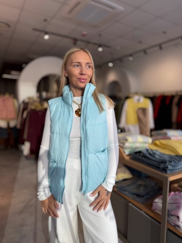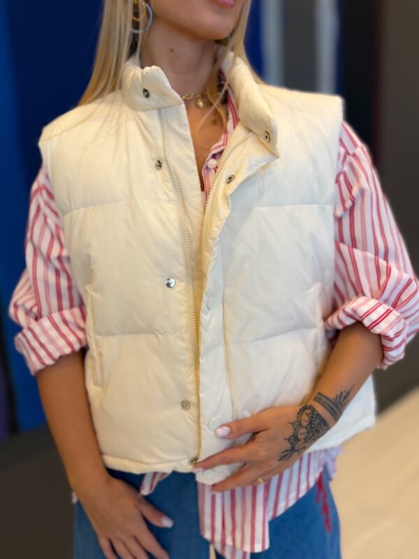 Graži ir stilinga baltos spalvos pūkinė liemenė, puikiai tinkanti vėsesniems orams. Trumpesnis siluetas suteikia modernumo ir lengvai derinamas tiek prie sportinio, tiek prie kasdienio ar miesto stiliaus. Šilta ir lengva, nevaržo judesių bei užtikrina komfortą visą dieną.