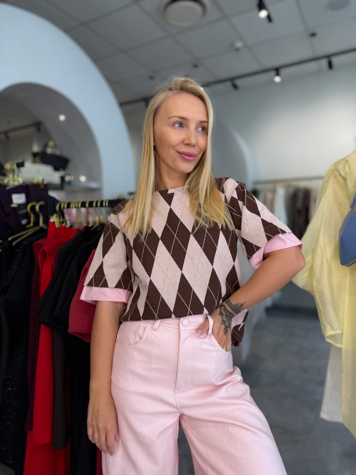 Šis stilingas rombo rašto megztukas – puikus pasirinkimas ieškančioms išskirtinio, bet lengvai priderinamo drabužio. Gražių spalvų derinys suteikia žaismingumo ir elegancijos, o klasikinis raštas išlieka madingas sezonas po sezono.