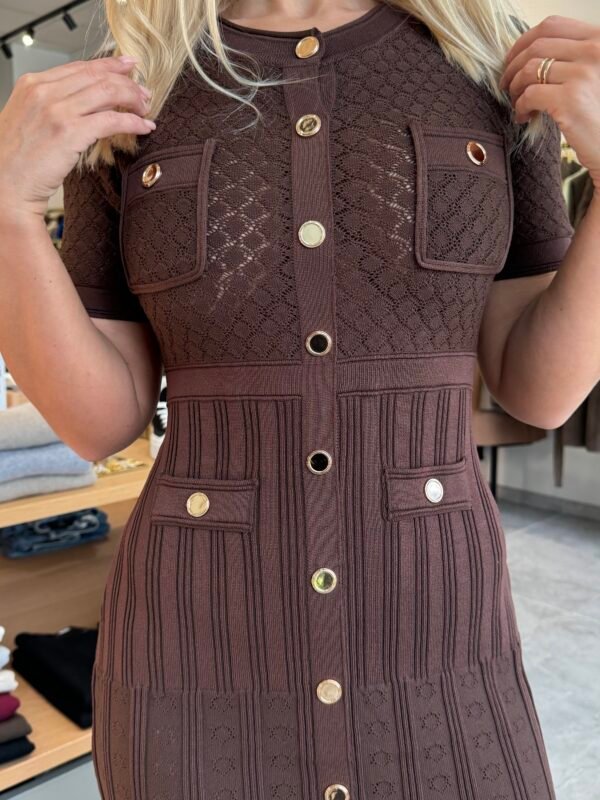 Įspūdinga šokoladinės spalvos suknelė – viena dydžio, bet priglunda tarsi siūta jums!