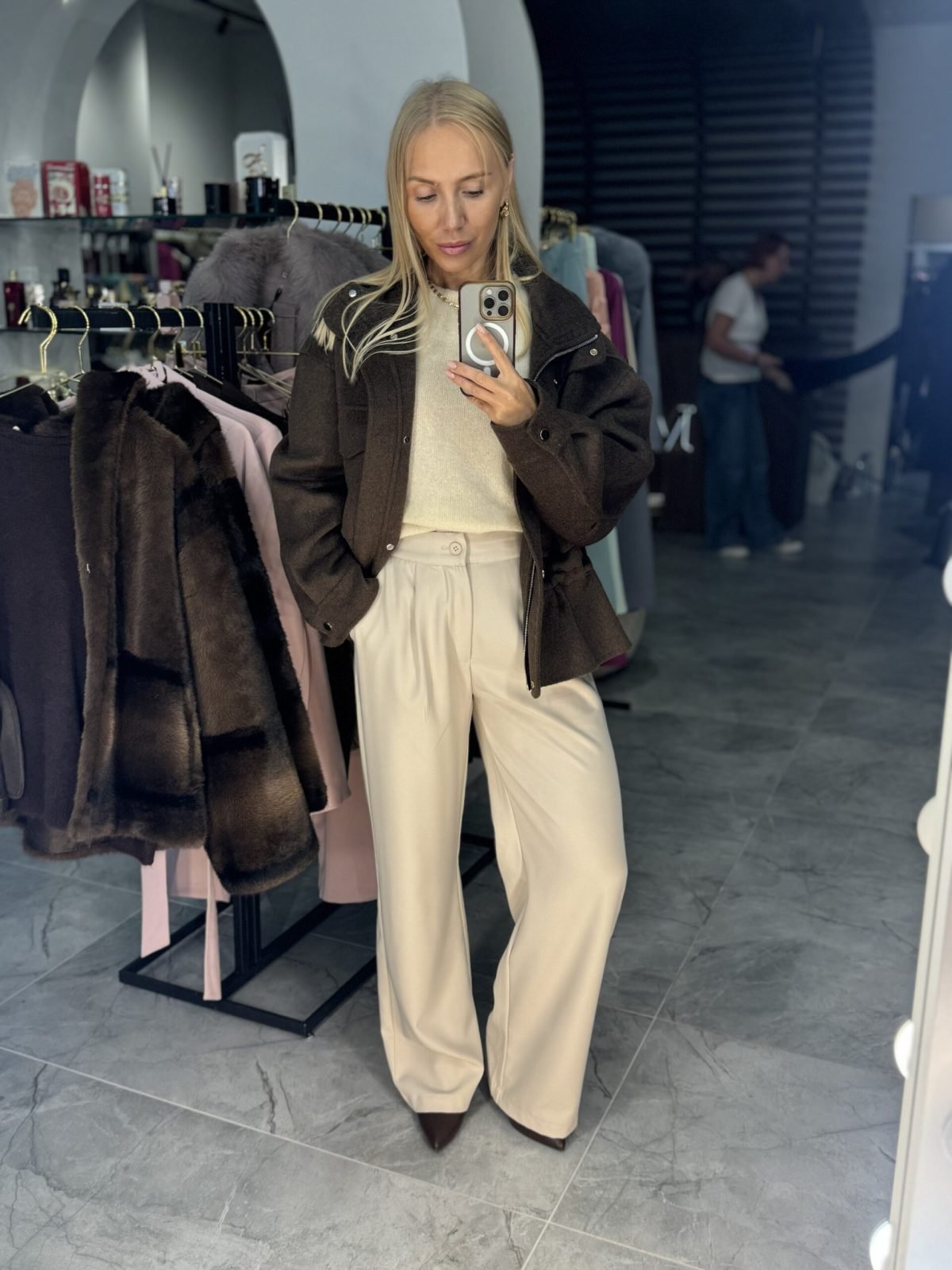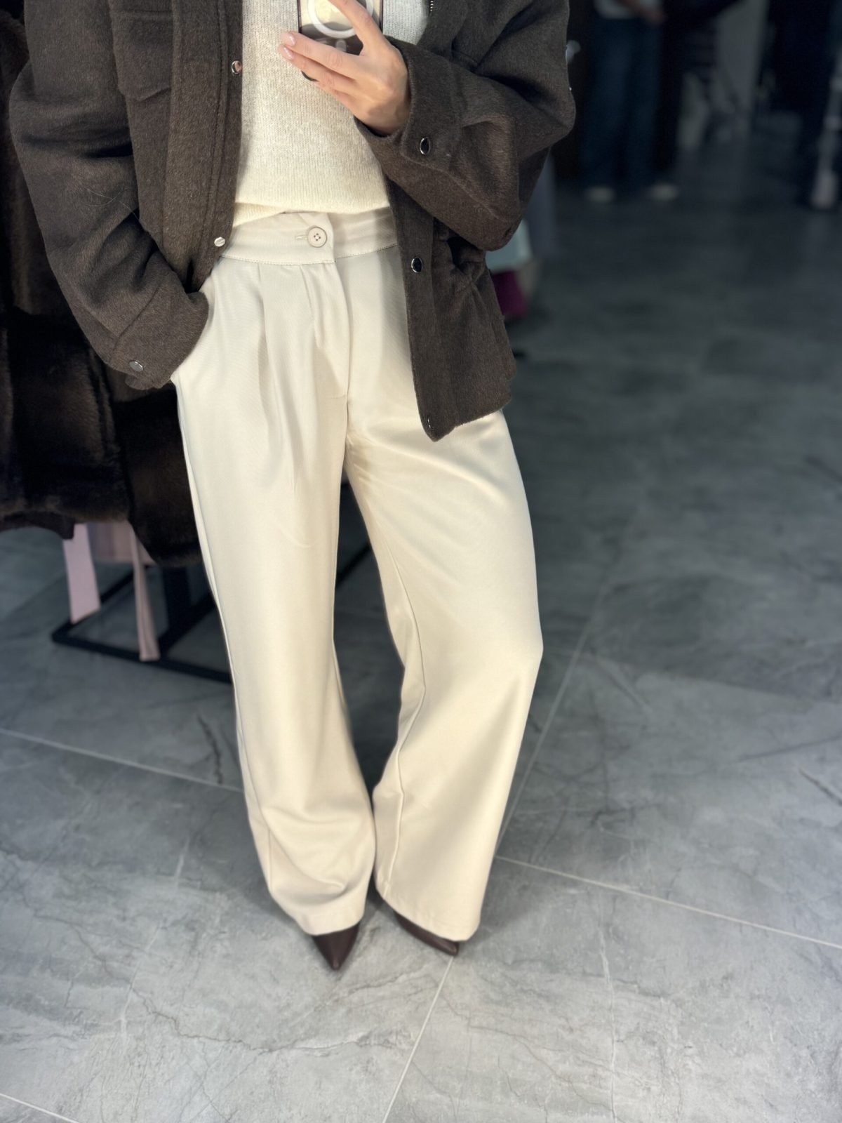 Tobulo kritimo kelnės – elegantiškos, švelniai platėjančio (tiesaus–kliošinio) kirpimo. Pagamintos iš aukštos kokybės audinio, kuris maloniai priglunda prie kūno ir nevaržo judesių. Audinys lengvas, glotnus ir puikiai krintantis, todėl kelnės atrodo tvarkingai tiek biure, tiek kasdienybėje.