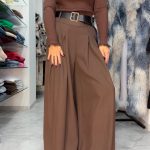 Elegantiškos, sijonkelnes primenančios kelnės – itin patogus ir stilingas pasirinkimas moterims, mėgstančioms laisvą, krintantį siluetą. Dėl ypatingo kirpimo šios kelnės atrodo kaip subtilus sijono ir kelnių derinys, suteikiantis lengvumo, judesių laisvės ir modernios elegancijos.