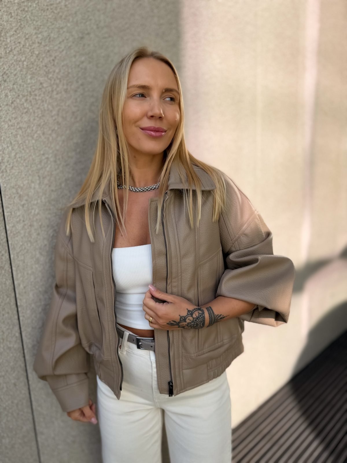 Atrask eleganciją ir komfortą viename! Ši išskirtinio modelio eco odos striukė pasižymi subtiliu dizainu, kuris lengvai derinamas tiek prie kasdienio, tiek prie puošnesnio įvaizdžio. Minkšta, aukštos kokybės eco oda suteikia prabangos pojūtį ir užtikrina patogumą visą dieną.