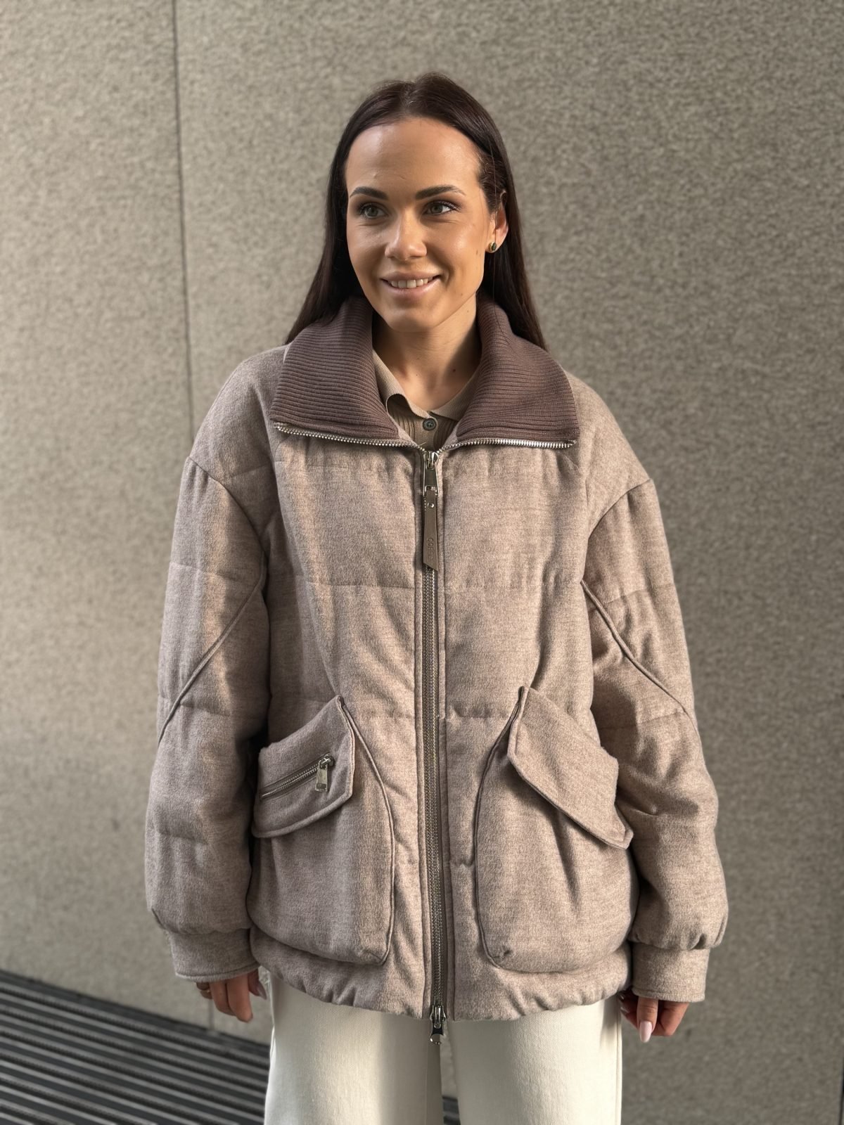 Viršutinė audinio dalis su vilnos priemaiša suteikia jaukumo ir kokybės pojūtį, o poliesteris užtikrina ilgaamžiškumą bei lengvą priežiūrą. Vidus pilnai pamuštas, todėl striukė patogi ir maloni dėvėti.