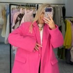 Stilingas, laisvesnio silueto švarkas–puspaltukas – puikus pasirinkimas ieškančioms išskirtinio, bet lengvai derinamo drabužio. Dėl savo ilgesnio kirpimo jis primena lengvą puspaltuką, todėl idealiai tinka tiek vėsesniems vakarams, tiek sluoksniavimui kasdieniuose deriniuose.